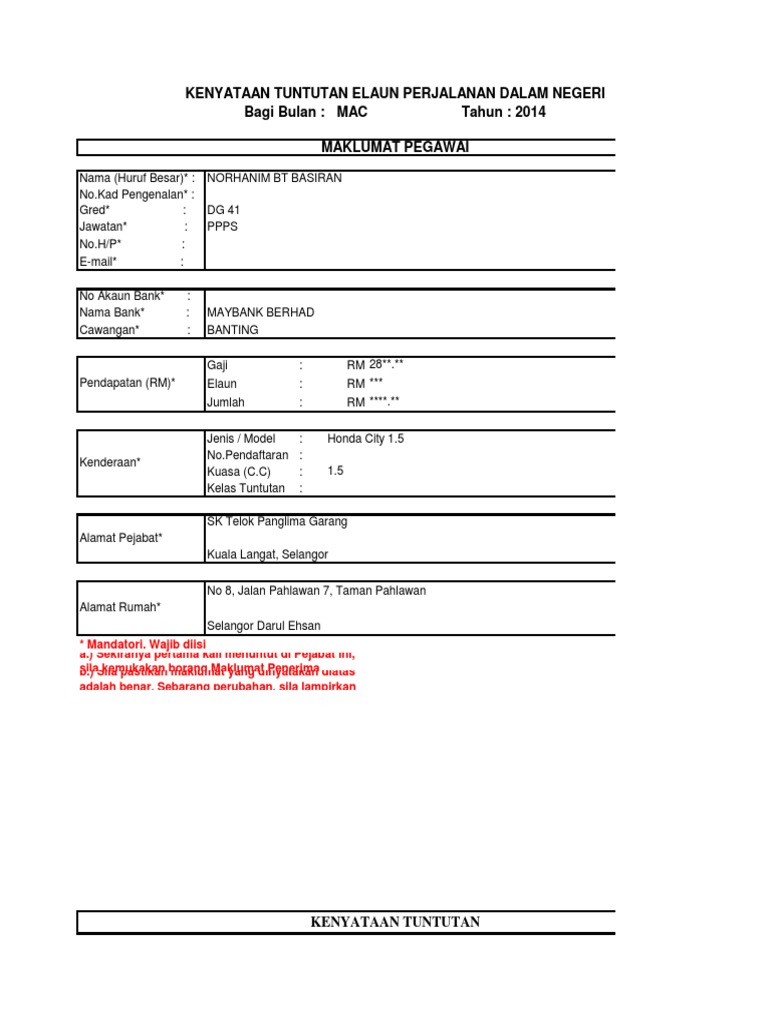 Butiran akaun bank pekerja buat tujuan deposit. Makluman kepada semua guru mata pelajaran prinsip perakaunan tingkatan 5, jpn kelantan , sektor penilaian dan peperiksaan jpn kelantan kepada semua ketua pentaksir dan pentaksir kawasan jpn kelantan, diminta menghantar borang tuntutan perjalanan bulan jun seperti biasa ke. Borang tuntutan perjalanan borang a borang maklumat akaun bank penuntut. Maklumat lanjut tentang tuntutan perjalanan hospital bagi pesara. Membuat tuntutan perjalanan & elaun harian lebih mudah menggunakan kelebihan aplikasi ms excel.
