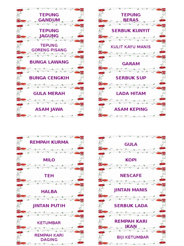 Petang ini aktiviti saya adalah melabel barang2 di dapur saya.